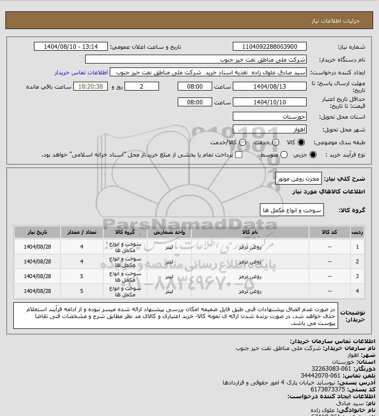 نام دستگاه خریدار:شرکت ملی مناطق نفت خیز جنوب