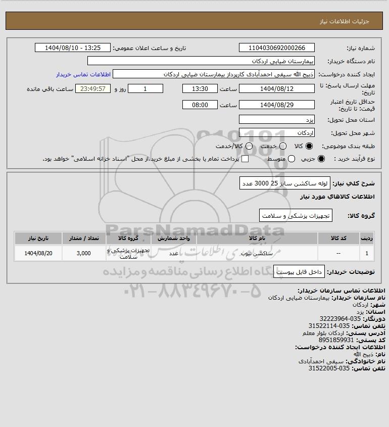 شرح کلی نیاز: لوله ساکشن سایز 25 3000 عدد