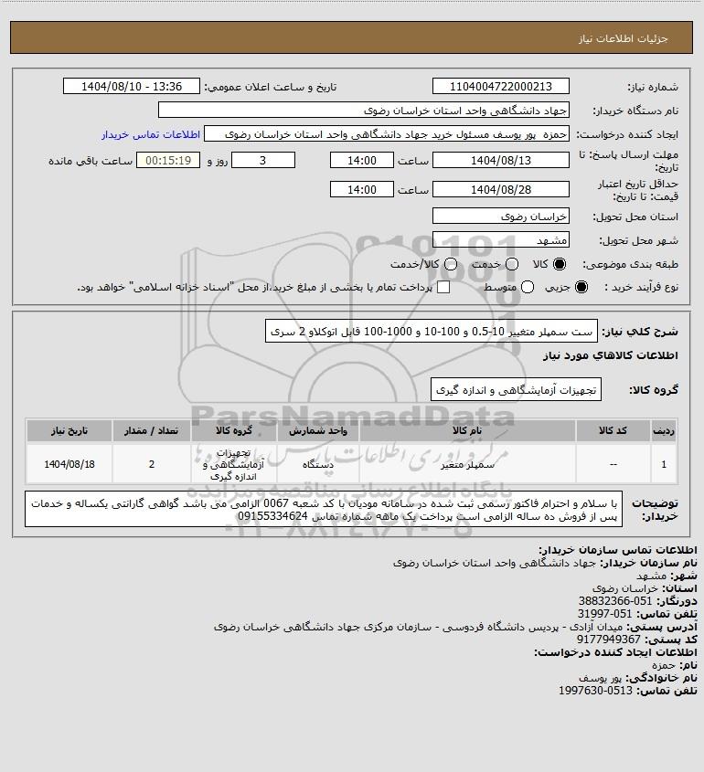 نام دستگاه خریدار:جهاد دانشگاهی واحد استان خراسان رضوی