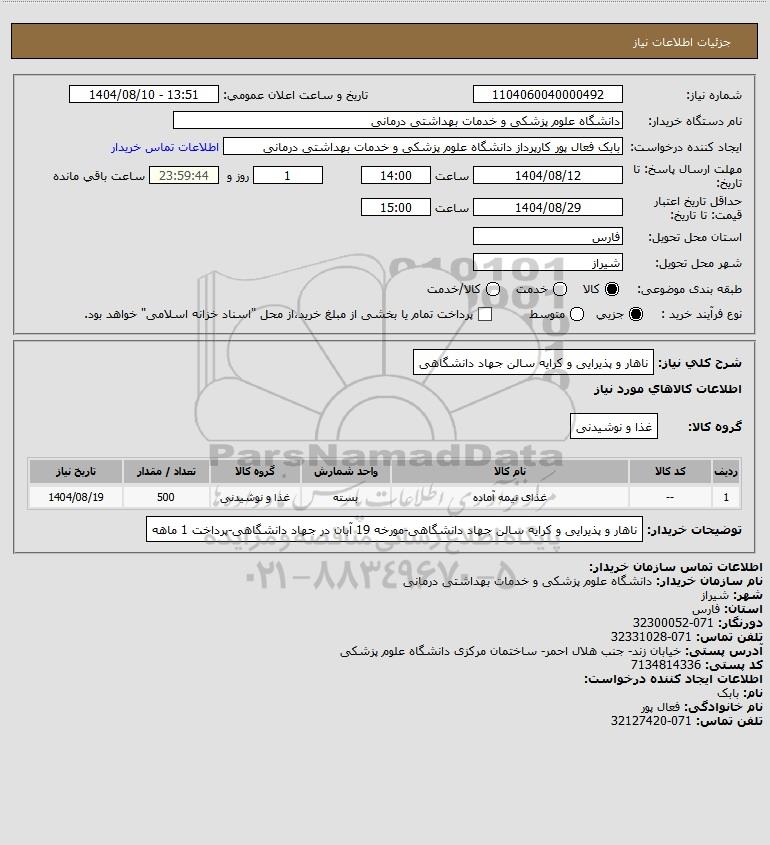 شرح کلی نیاز: ناهار و پذیرایی و کرایه سالن جهاد دانشگاهی