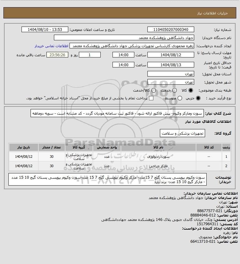 شرح کلی نیاز: سوزن ومارکر وکیوم- پیش فاکتور ارائه شود - فاکتور ثبت سامانه مودیان گردد - کد مشابه است - سویه دوماهه