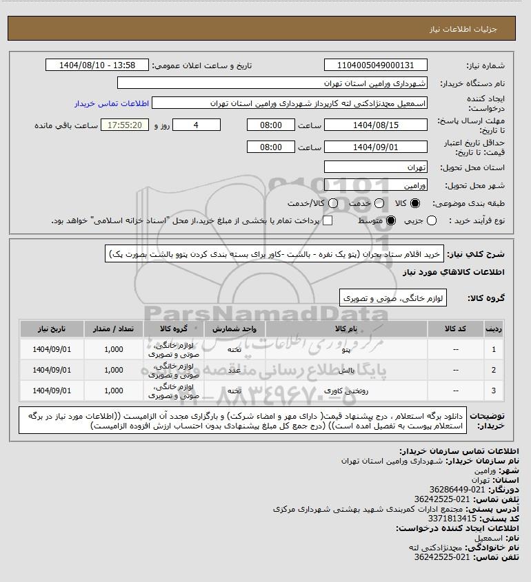 نام دستگاه خریدار:شهرداری ورامین استان تهران