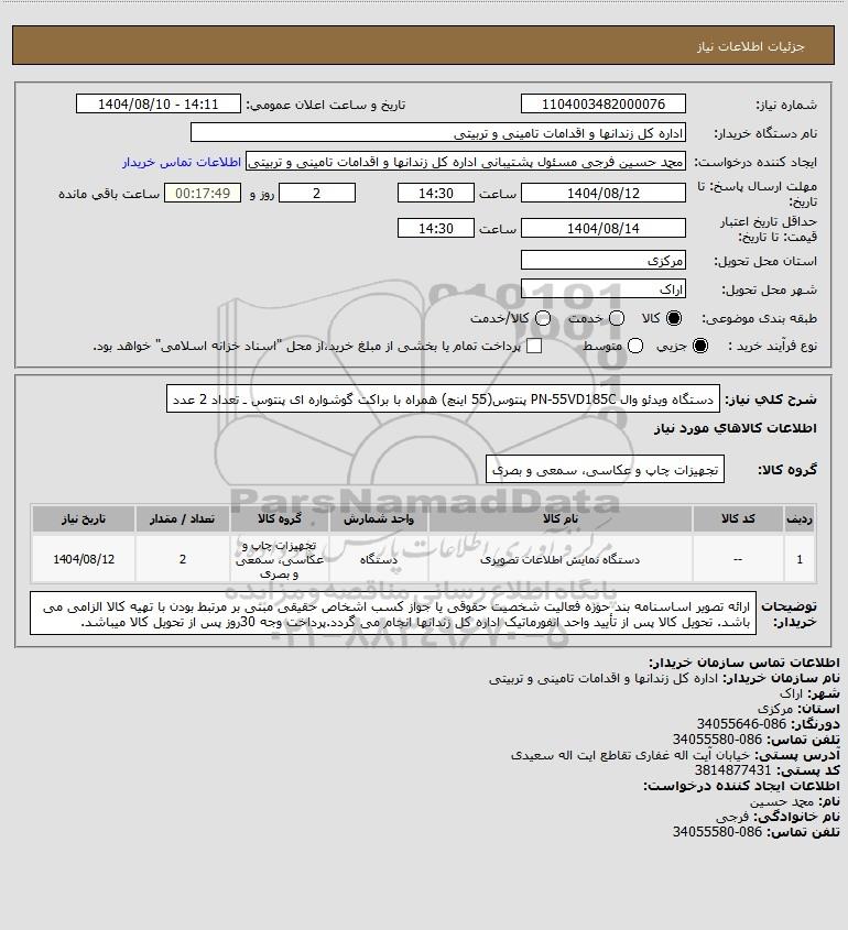 | 1 | -- | دستگاه نمایش اطلاعات تصویری | دستگاه | تجهیزات چاپ و عکاسی، سمعی و بصری | 2 | 1404/08/12 |