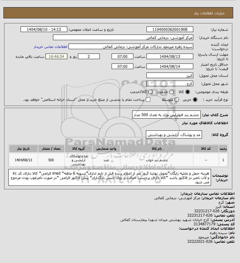 شرح کلی نیاز: چشم بند فتوتراپی نوزاد به تعداد 500 عدد