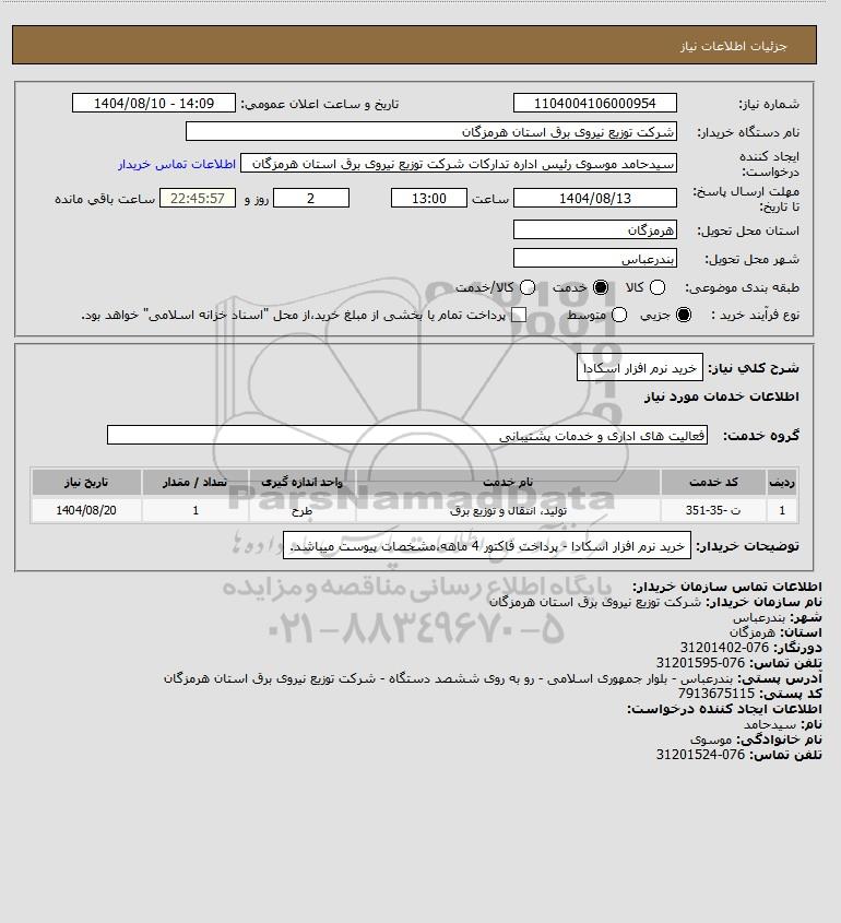 توضیحات خریدار:خرید نرم افزار اسکادا - پرداخت فاکتور 4 ماهه،مشخصات پیوست میباشد.