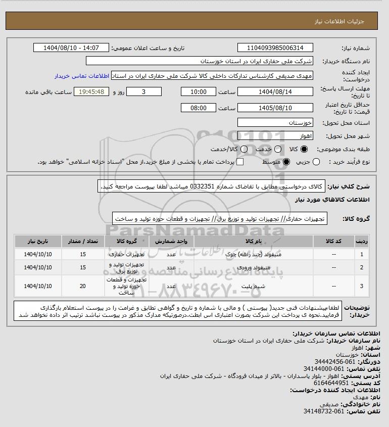 نام دستگاه خریدار:شرکت ملی حفاری ایران در استان خوزستان
