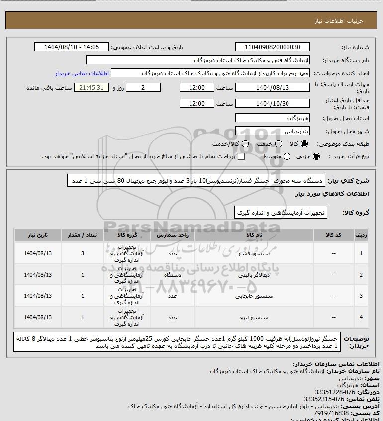 نام دستگاه خریدار:ازمایشگاه فنی و مکانیک خاک استان هرمزگان