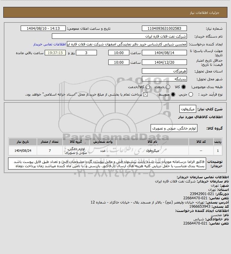 نام سازمان خریدار: شرکت نفت فلات قاره ایران