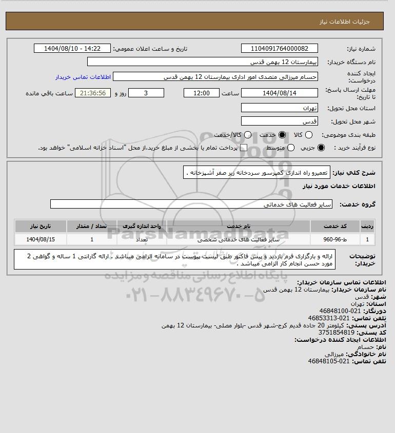 نام دستگاه خریدار:بیمارستان 12 بهمن قدس