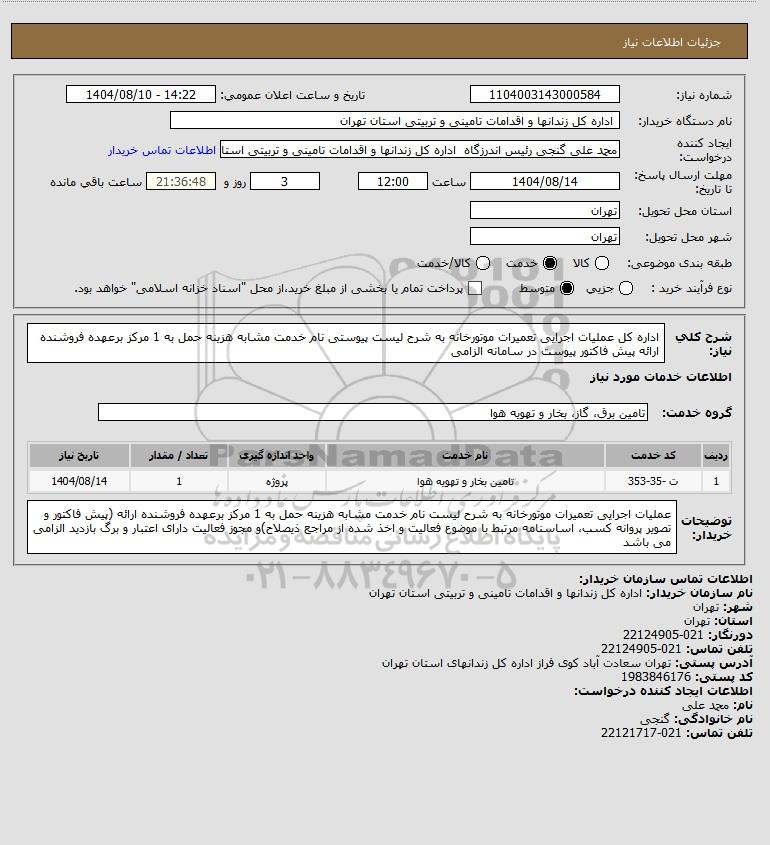نام دستگاه خریدار: اداره کل زندانها و اقدامات تامینی و تربیتی استان تهران