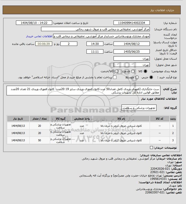 استعلام ست جایگذاری (فمورال وریدی کامل تعداد50 عدد-کانول فمورال وریدی سایز 19 20عدد- کانول فمورال وریدی 21 تعداد 20عدد مطابق قوانین اداره کل تجهیزات پزشکی, استعلام ست جایگذاری (فمورال وریدی کامل تعداد50 عدد-کانول فمورال وریدی سایز 19 20عدد- کانول فمورال وریدی 21 تعداد 20عدد مطابق قوانین اداره کل تجهیزات پزشکی