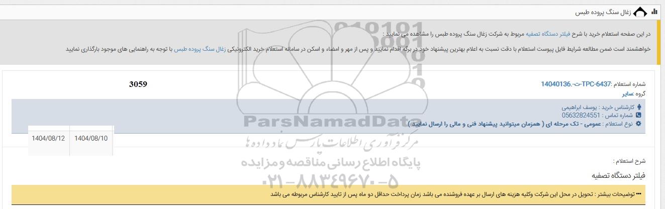 در این صفحه استعلام خرید با شرح فیلتر دستگاه تصفیه مربوط به شرکت زغال سنگ پروده طبس را مشاهده می نمایید.