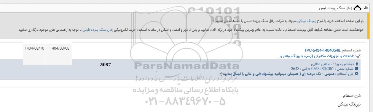 در این صفحه استعلام خرید با شرح بیرینگ تیمکن  به شرکت سنگ پروده طبس را مشاهده می نمایید :