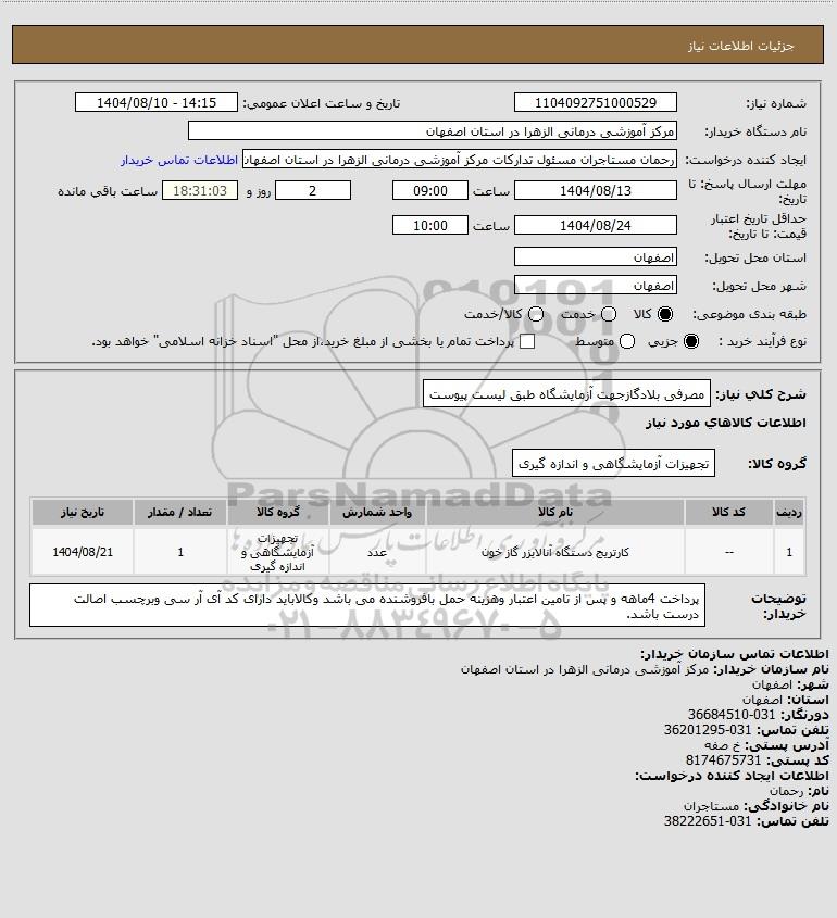 نام دستگاه خریدار:مرکز آموزشی درمانی الزهرا در استان اصفهان