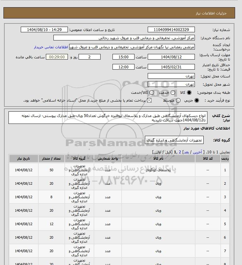 نام سازمان خریدار: مرکز آموزشی، تحقیقاتی و درمانی قلب و عروق شهید رجائی