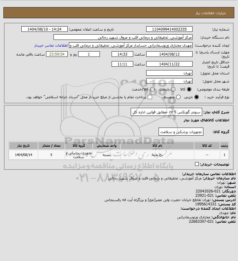نام دستگاه خریدار:مرکز آموزشی، تحقیقاتی و درمانی قلب و عروق شهید رجائی