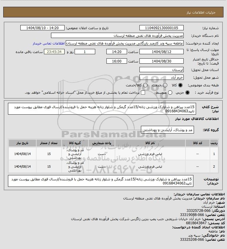 نام دستگاه خریدار:مدیریت پخش فرآورده های نفتی منطقه لرستان