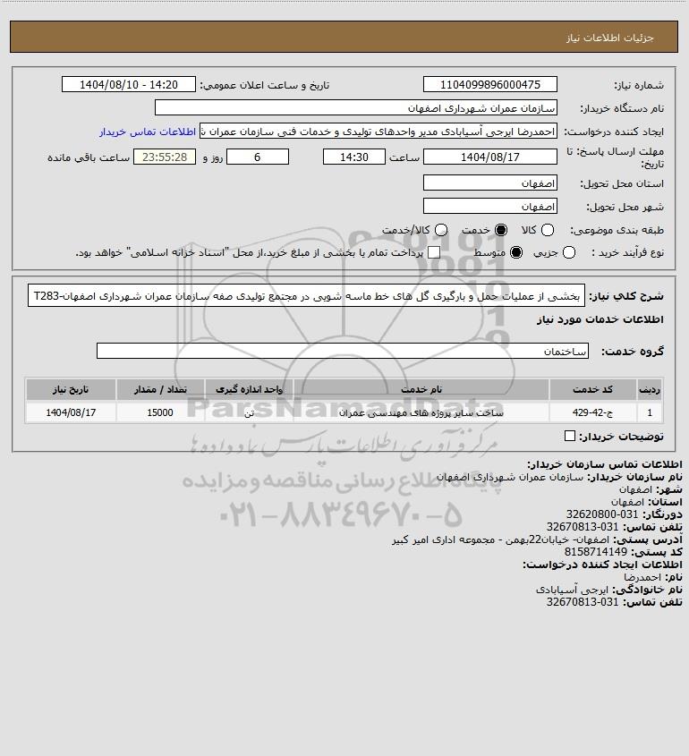 نام دستگاه خریدار:سازمان عمران شهرداری اصفهان