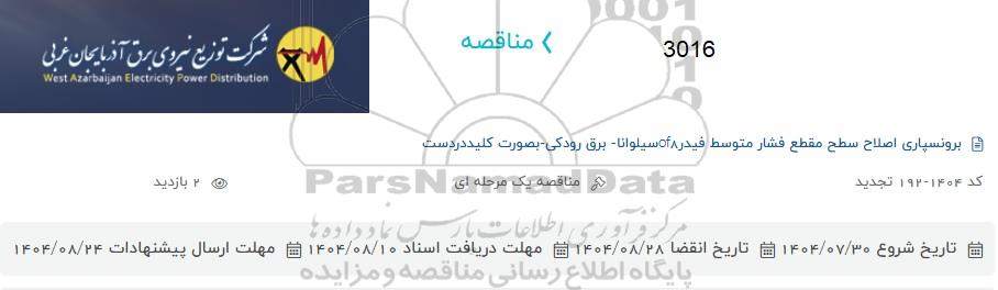 این مناقصه در استان آذربایجان غربی با دسته بندی های صنفی و تخصصی پیمانکاری برق و الکترونیک برگزار میشود.