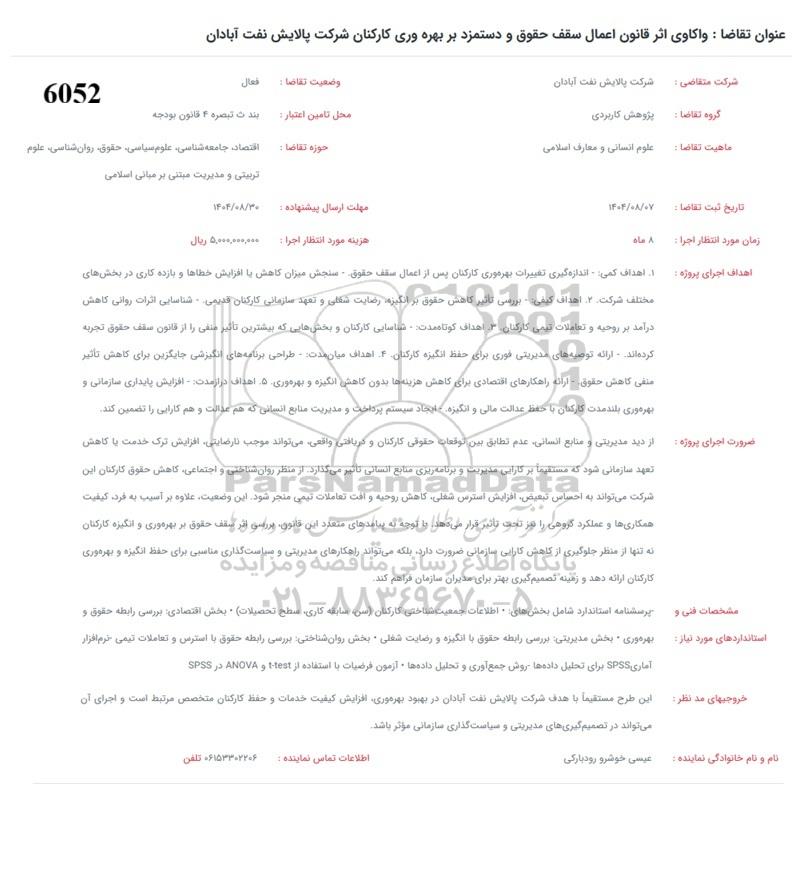 عنوان تقاضا : واکاوی اثر قانون اعمال سقف حقوق و دستمزد بر بهره وری کارکنان شرکت پالایش نفت آبادان