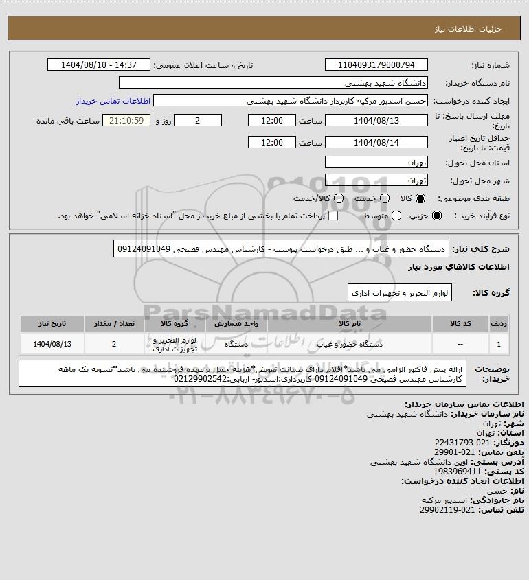 نام دستگاه خریدار:دانشگاه شهید بهشتی