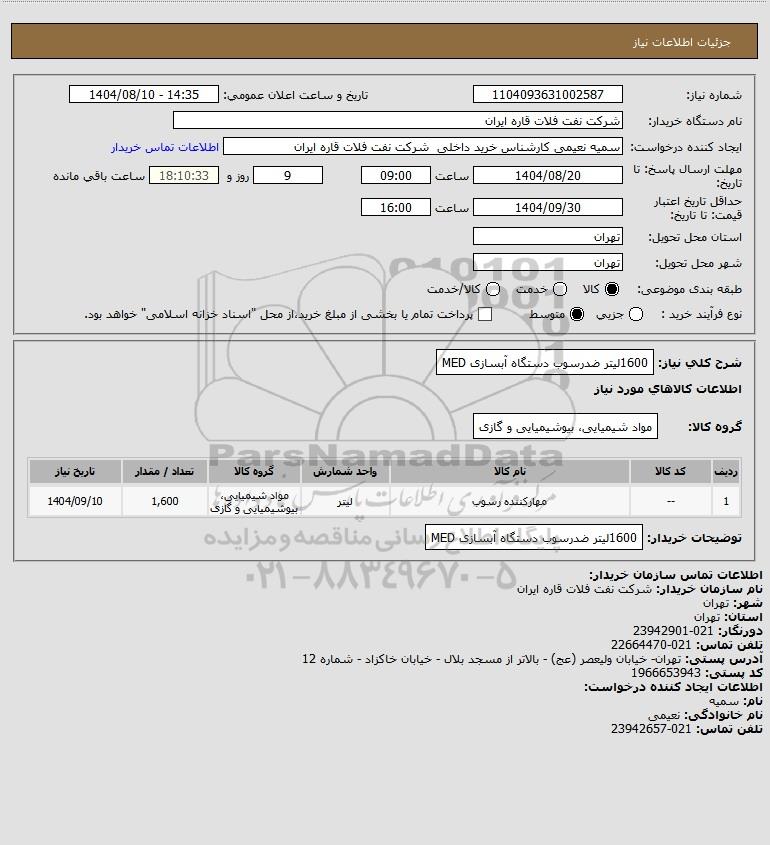 شرح کلی نیاز: 1600لیتر ضدرسوب دستگاه آبسازی MED