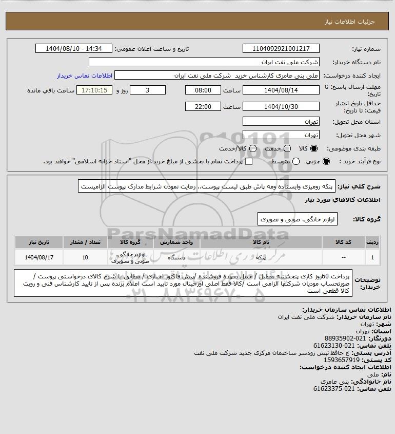 نام دستگاه خریدار:شرکت ملی نفت ایران