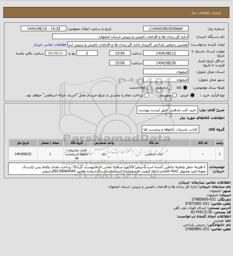 شرح کلی نیاز: خرید کتب مدهبی طبق لیست پیوست