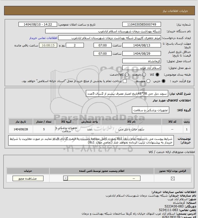 شرح کلی نیاز: سوند دبل جی 28*48تاریخ اعتبار مصرف بیشتر از 2سال 5عدد