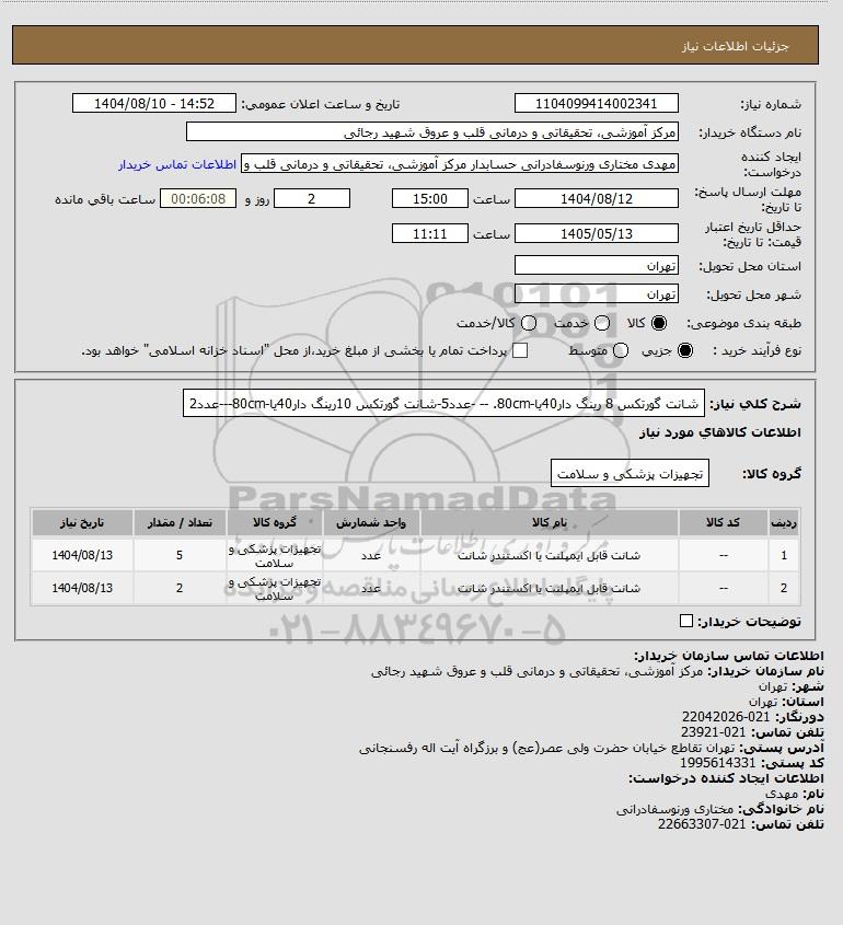 شرح کلی نیاز: شانت گورتکس 8 رینگ دار40یا-80cm. -- -عدد5-شانت گورتکس 10رینگ دار40یا-80cm---عدد2