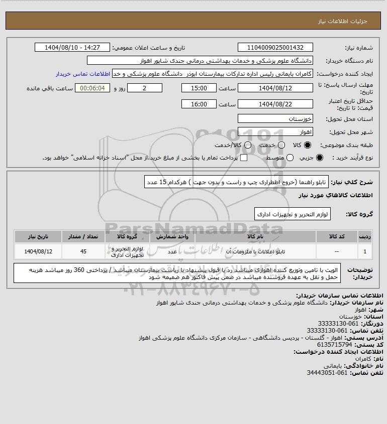 1 -- تابلو اعلانات یا ملزومات آن عدد لوازم التحریر و تجهیزات اداری 45 1404/08/12
