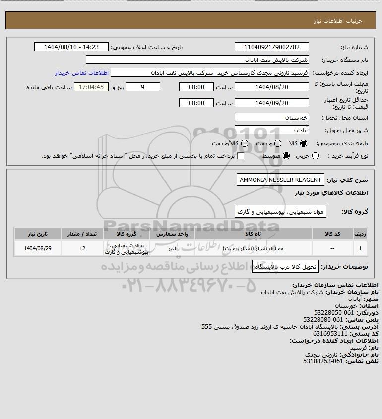 شرح کلی نیاز: AMMONIA NESSLER REAGENT