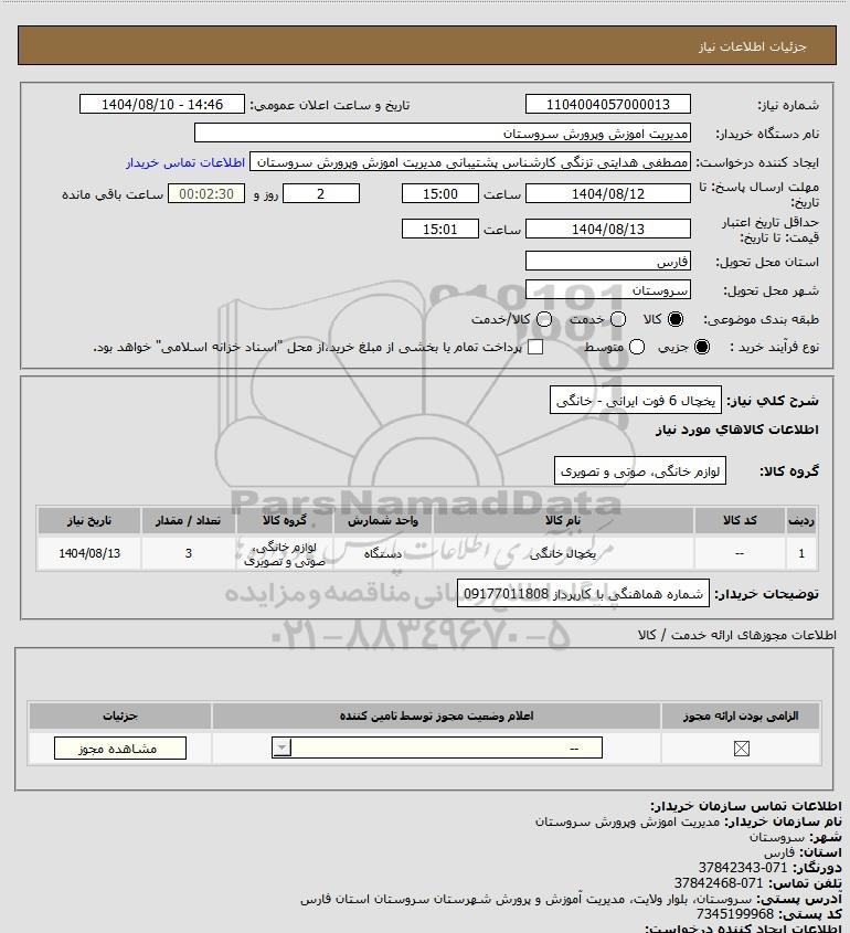 نام سازمان خریدار: مدیریت اموزش وپرورش سروستان