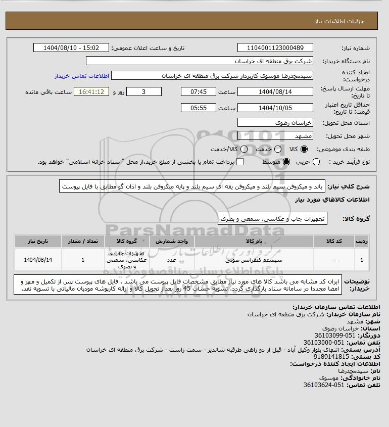 نام دستگاه خریدار:شرکت برق منطقه ای خراسان