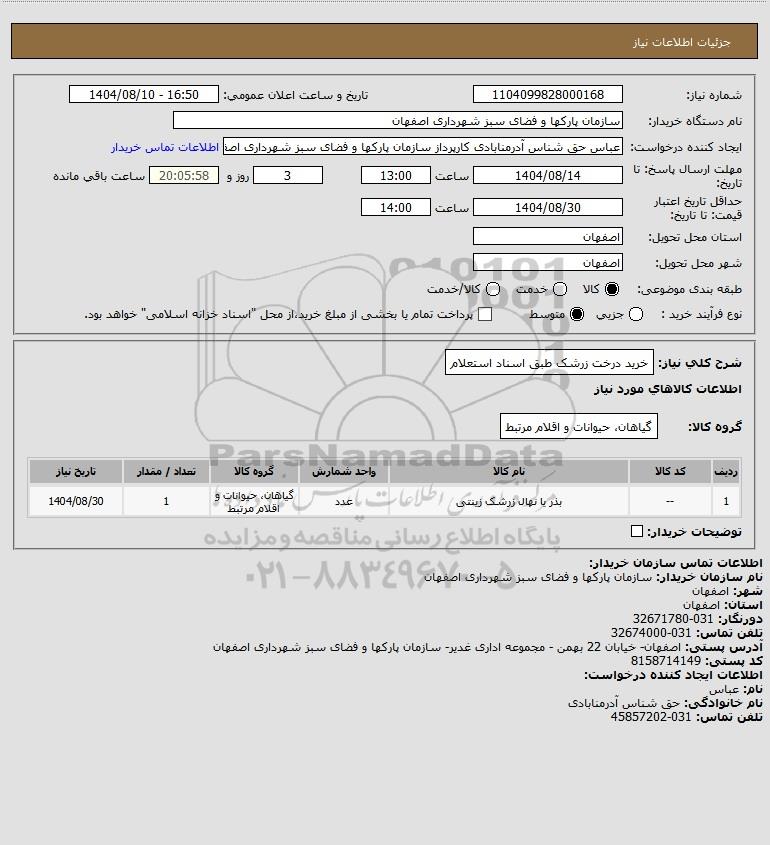 شرح کلی نیاز: خرید درخت زرشک طبق اسناد استعلام