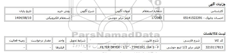احسان چابوک - 05141522291172083فیلتر درایر جوشیاستعلام الکترونیکی1404/08/10
