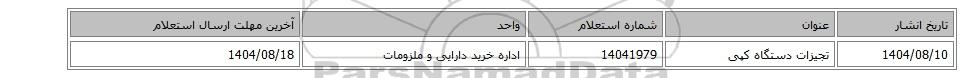 | 1404/08/10 | تجیزات دستگاه کپی | 14041979 | اداره خرید دارایی و ملزومات | 1404/08/18 |