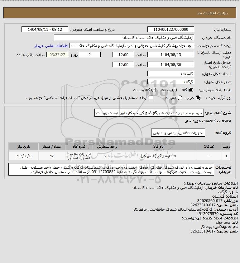 نام دستگاه خریدار:ازمایشگاه فنی و مکانیک خاک استان گلستان