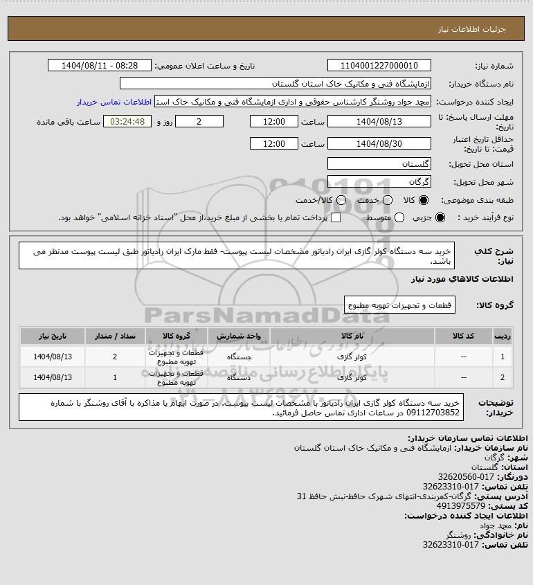 نام دستگاه خریدار:ازمایشگاه فنی و مکانیک خاک استان گلستان