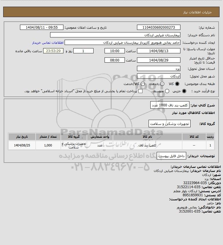 1 -- کلمپ بند ناف عدد تجهیزات پزشکی و سلامت 1,000 1404/08/25