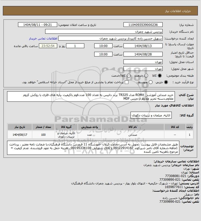 نام سازمان خریدار: پردیس شهید چمران
