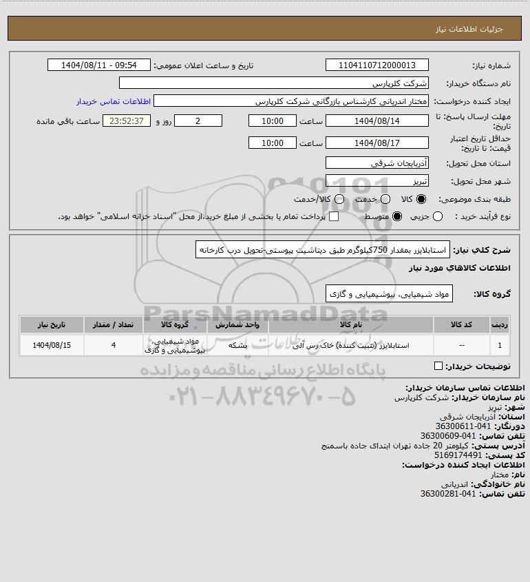 نام سازمان خریدار: شرکت کلرپارس