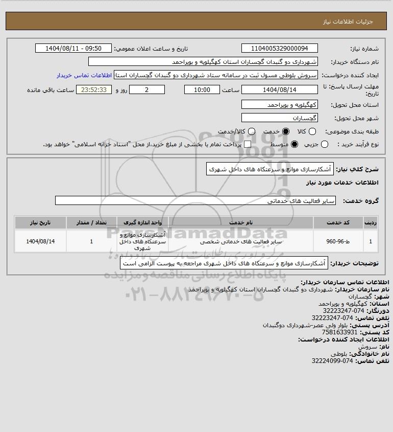 نام دستگاه خریدار:شهرداری دو گنبدان گچساران استان کهگیلویه و بویراحمد