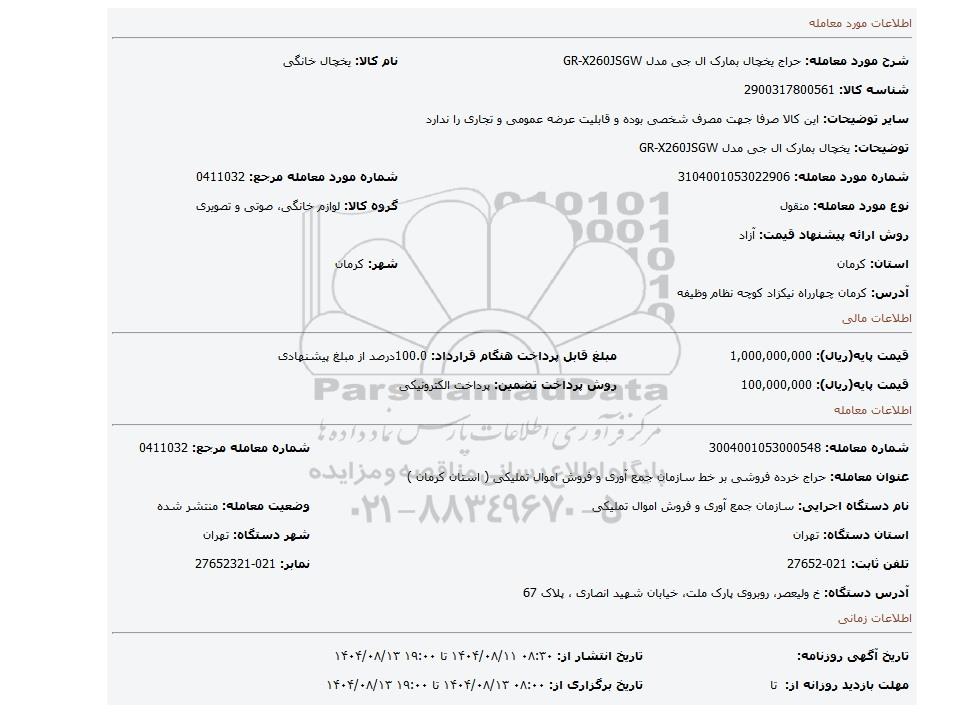 | شماره مورد معامله: 3104001053022906 | شماره مورد معامله مرجع: 0411032 | |