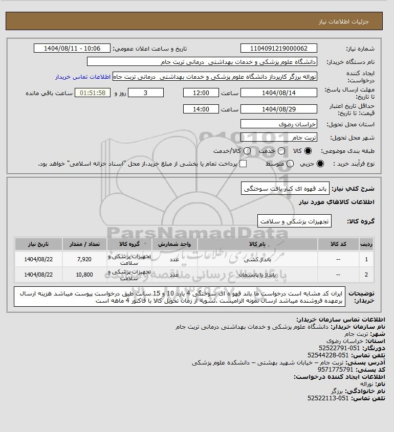 نام دستگاه خریدار:دانشگاه علوم پزشکی و خدمات بهداشتی درمانی تربت جام