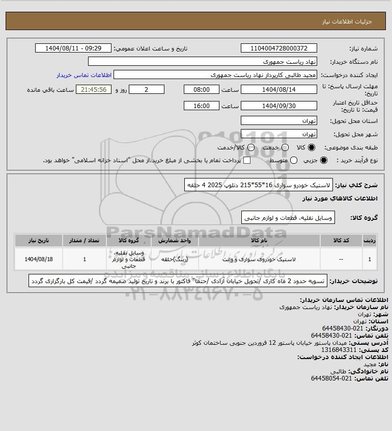 1 -- لاستیک خودروی سواری و وانت (رینگ)حلقه وسایل نقلیه، قطعات و لوازم جانبی 1 1404/08/18
