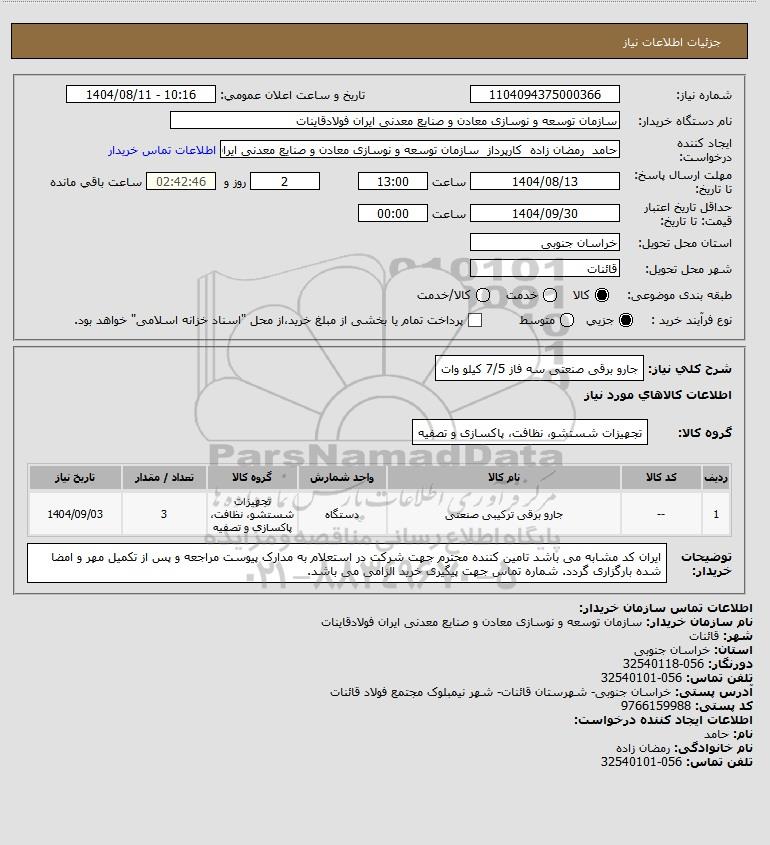 نام دستگاه خریدار:سازمان توسعه و نوسازی معادن و صنایع معدنی ایران فولادقاینات