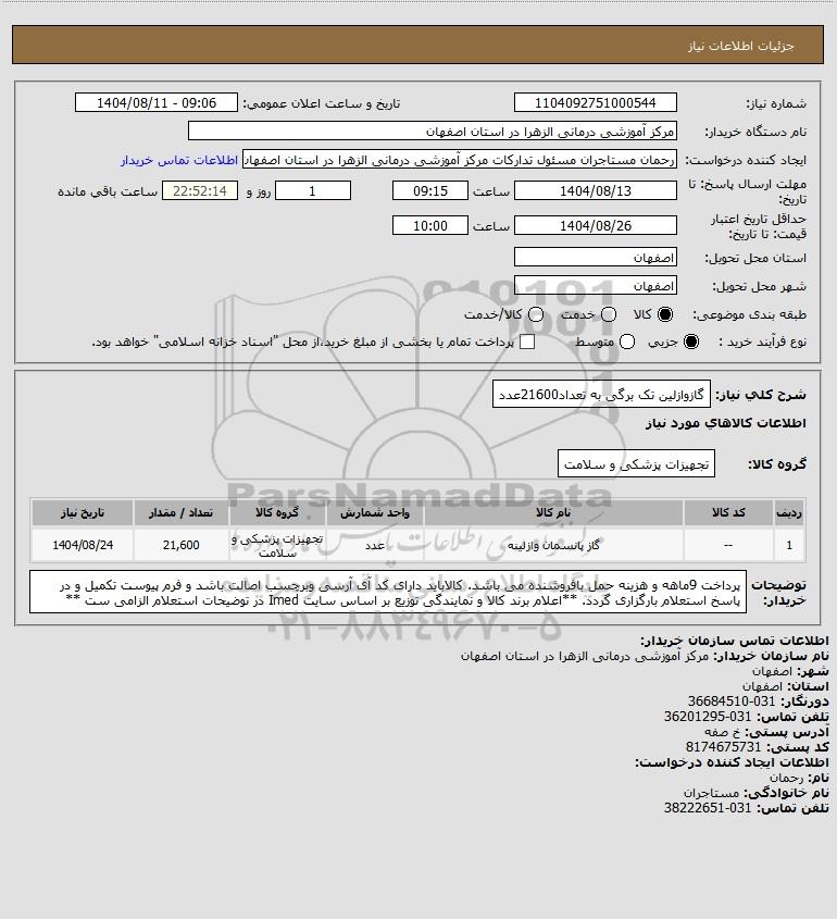 استعلام گازوازلین تک برگی به تعداد21600عدد, استعلام گازوازلین تک برگی به تعداد21600عدد