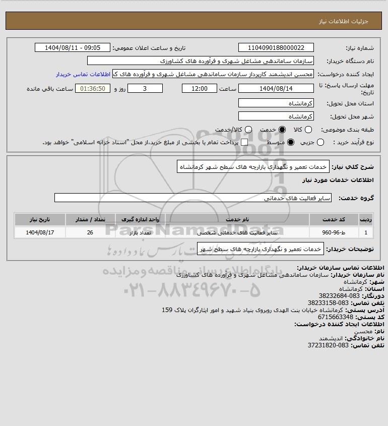 شرح کلی نیاز: خدمات تعمیر و نگهداری بازارچه های سطح شهر کرمانشاه