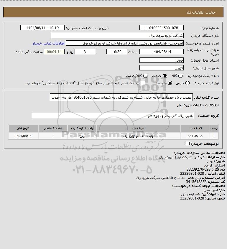 شرح کلی نیاز: تجدید پروژه خودیاری جا به جایی شبکه بم شهرکی به شماره سنم s04061630 امور برق جنوب